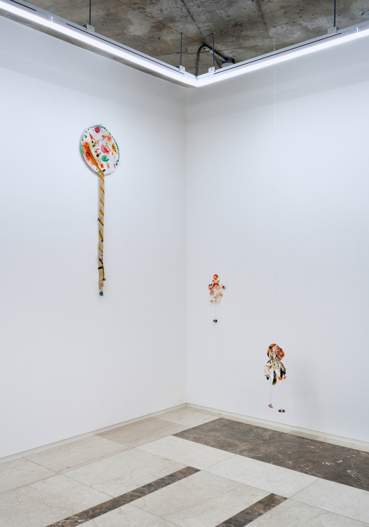 두 작가의 작업은 서로 다른 방식으로 표면을 구성하지만, 완결된 상태로 수렴되지 않는다는 점에서 맞닿아 있다. 김정아의 화면에서 물질들은 느슨하게 연결된 채 하나의 구조를 이루고, 유창창의 화면에서 형상들은 하나로 구성되면서도 단일한 의미로 확정되지 않는다. 하나는 물질을 통해, 다른 하나는 이미지를 통해 관계의 조건을 드러낸다. 그러나 그 관계는 명확하게 규정되지 않고 언제나 일정한 거리와 긴장을 유지한다.