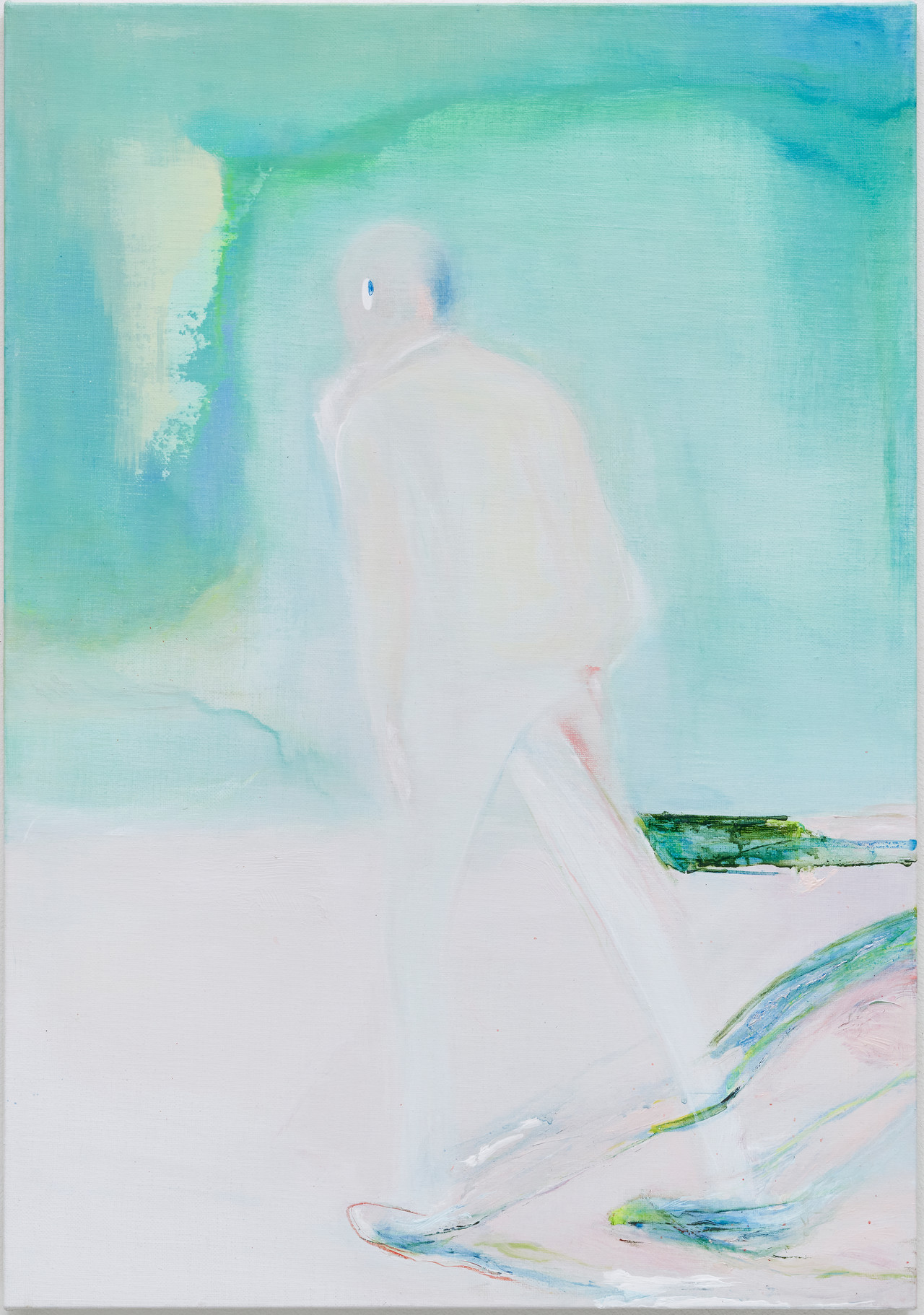 화면은 전반적으로 부드러운 기조를 유지한다. 옅은 유머를 머금고 있는 듯하지만, 그 안에는 설명되지 않는 여백과 잔잔한 고요함이 함께 머문다. 인물은 어딘가에 서 있는 듯하지만 그 장소는 분명히 규정되지 않고, 장면은 끝맺음에 이르지 않은 채 열린 상태로 지속된다. 그리하여 유창창의 회화는 하나의 이야기를 완성하기보다, 형상과 공간, 그리고 그 사이에서 미묘하게 형성되는 상황의 순간을 붙들어 둔다. 이미지는 확정되기 직전의 상태로 머물며, 여러 가능성을 동시에 품은 채 조용히 이어진다.